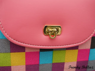 (We love the unique checkered patterns and the rainbow colour. To top it off, the strap adds a little twist to the bag. Take a closer look )